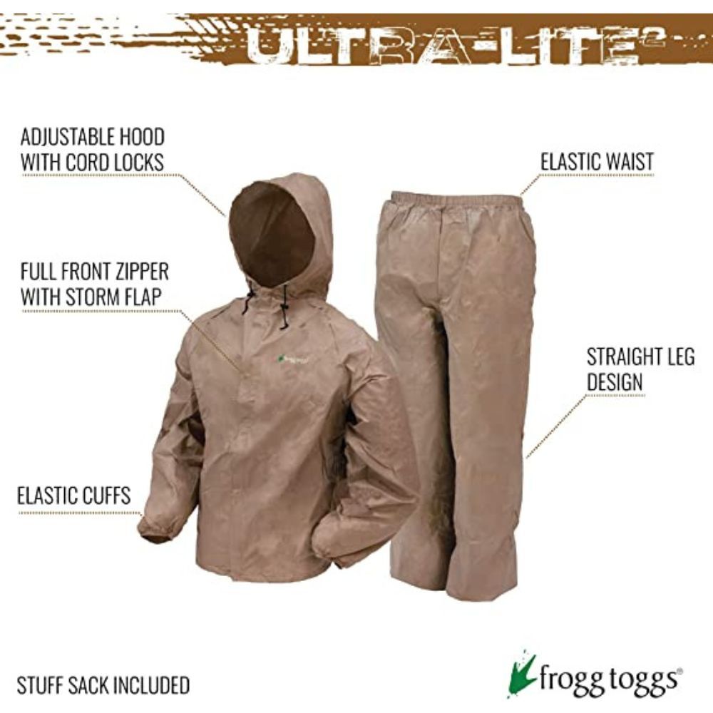 Frogg Toggs Men's Ultra-Lite2 Rain Suit is a big deal. Not only does it include a jacket and pants, but it is made with Frogg Toggs breathable, non-woven fabric that is waterproof, wind-resistant, and lightweight.